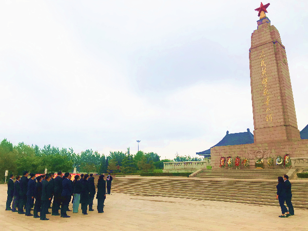 为贯彻落实市国资委党委党史学习教育领导小组关于在党史学习教育中开展“清明祭英烈”活动通知要求和集团党委关于开展党史学习教育具体部署,把开展党史学习教育同弘扬优秀传统文化结合起来,4月22日下午,集团总部党总支组织集团公司领导班子成员、总部各部室同志前往天津市烈士陵园开展“鲜花献英烈,哀思祭忠魂”祭扫活动,深切缅怀革命英烈,传承赓续红色基因,激发爱国主义热情,持续推动党史学习教育走深走实。 青山埋忠骨,史册载功勋。高高耸立在广场中央的纪念碑上镌刻着“人民英雄永垂不朽”,祭扫仪式主持人向烈士纪念碑行鞠躬礼,宣布烈士公祭仪式开始。 ![]() 怀着庄重沉痛的心情,总部青年干部代表向烈士敬献花圈,集团公司党委书记、董事长杨洪峰整理挽联,领导班子成员集体缓步登上纪念碑前的台阶敬献花束。 随后,参加活动的全体人员整齐肃立、手持菊花,缓步环绕纪念碑绕行参观,寄托哀思、告慰忠魂,集体面向纪念碑,默哀鞠躬、献花致敬,表达了对革命先烈的崇高敬意。 ![]() 祭扫仪式结束后,全体同志前往革命烈士纪念馆进行参观,深切追忆革命先烈的丰功伟绩和斗争精神,了解了先辈先烈为了人民英勇奋战的革命精神,深受震撼、深受教育、深受鼓舞。 ![]() 绵绵细雨,氤氲萦绕,在革命烈士纪念馆前,全体同志合影留念。大家纷纷表示,一定要把对革命先辈的感念与敬仰,转化为拼搏奋斗的力量,作为“学史明理、学史增信、学史崇德、学史力行”的营养剂、能量棒,继承和发扬先烈们不畏艰险、艰苦奋斗、英勇顽强的革命精神,务实重干,感恩奋进,砥砺前行,以昂扬奋斗的姿态献力交通发展、展现交通之为。 |