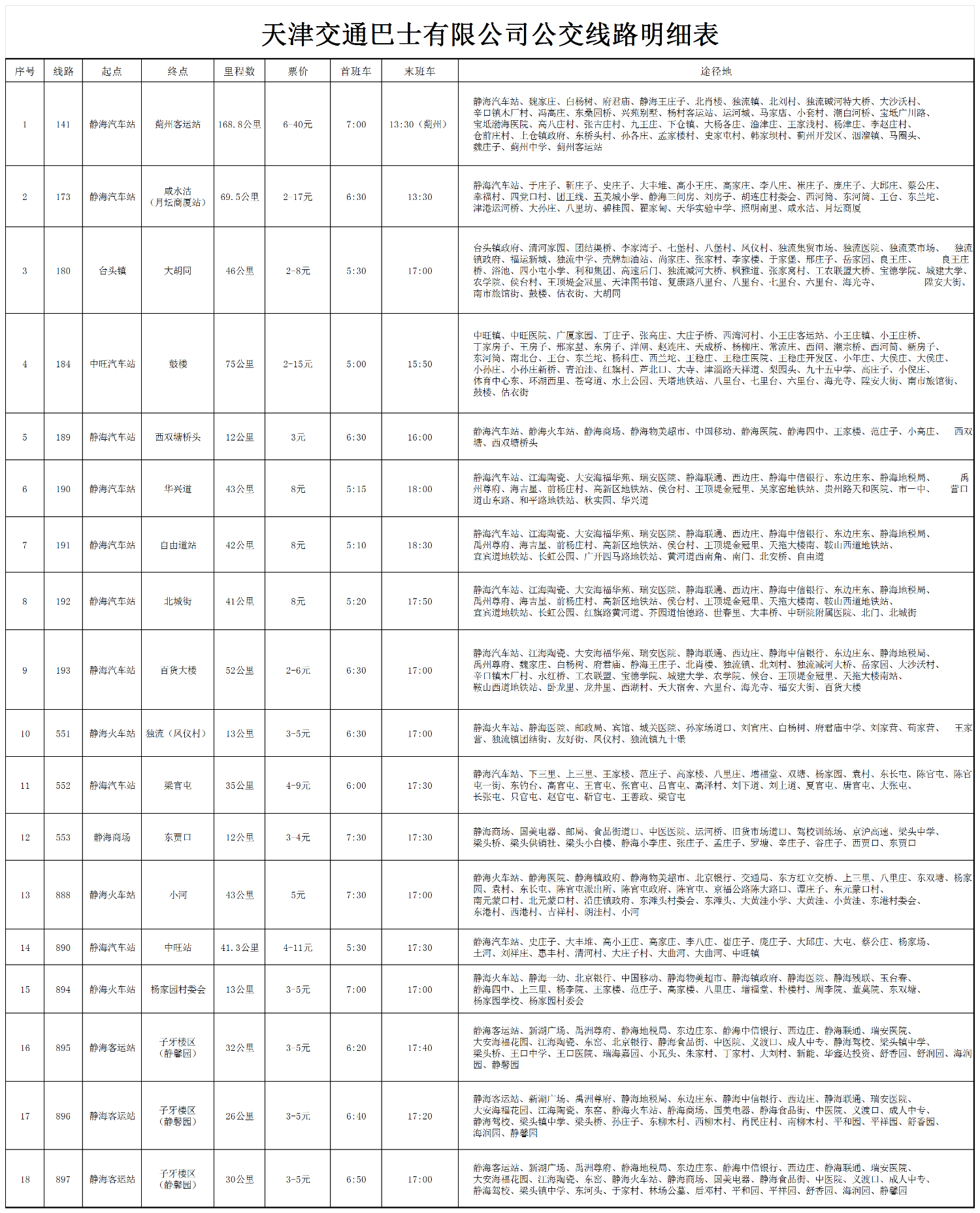 村村通、省、市际线路起终时间、票价明细(2024.01.24)