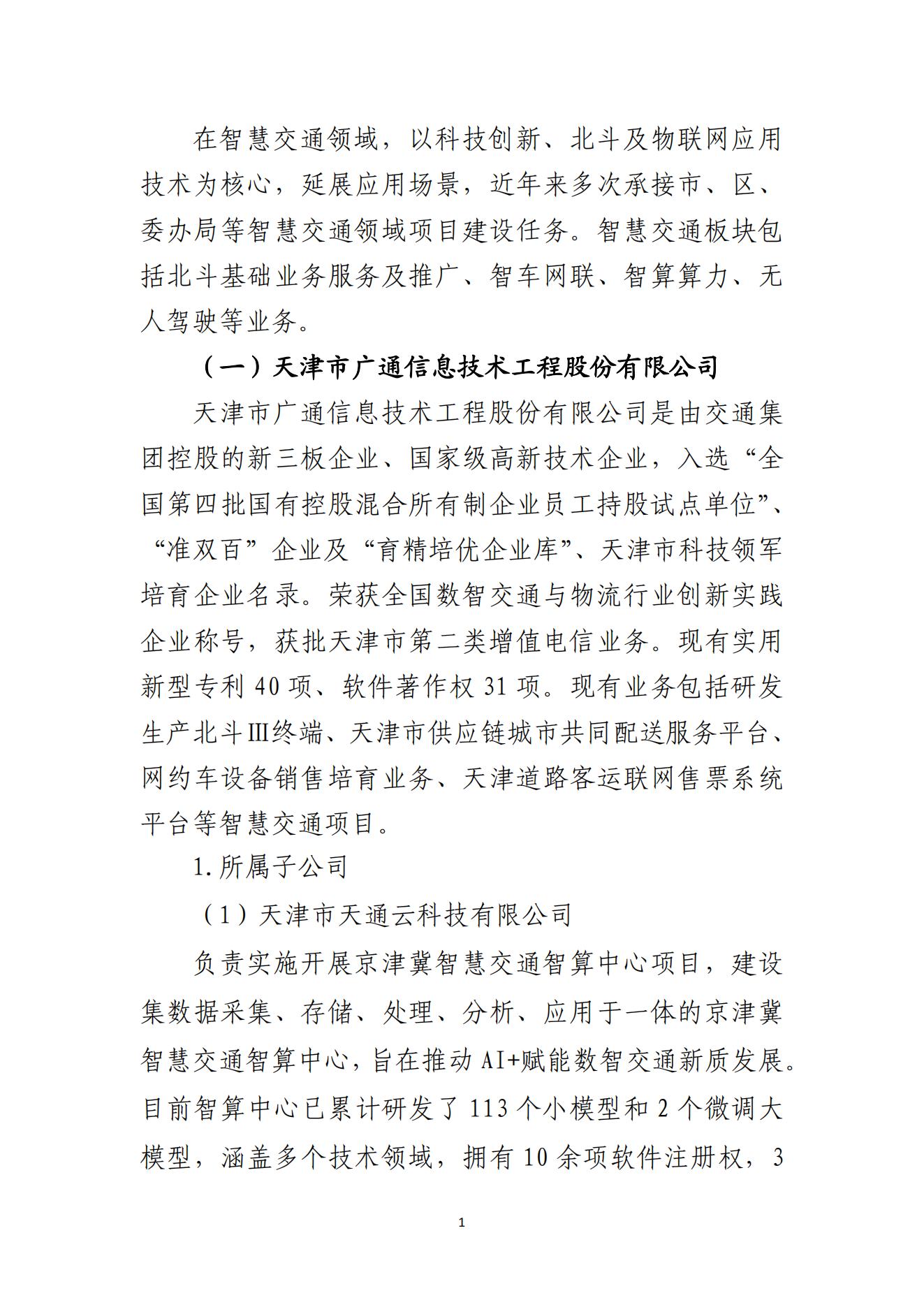天津市交通(集团)有限公司服务项目一览——智慧交通